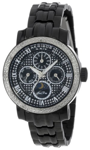 -. Title : Akribos XXIV Women's AK614BK Grandiose Diamond Multi-Function Stainless Steel Black Bracelet Watch