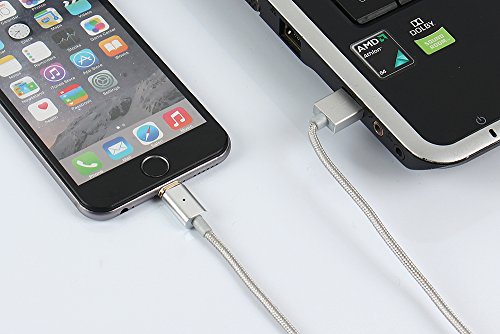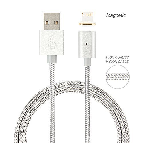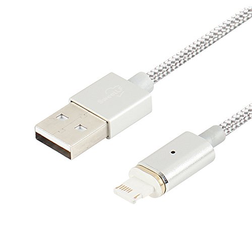 SweetLF Metal Magnetic Quick Lightning USB Data Sync and Charger Cable High Speed 8 Pin 4 Feet Chargering Cord for Apple iPhone 6s 6 Plus 5 5s 5c iPad Air iPad Mini iPod Touch,Silver