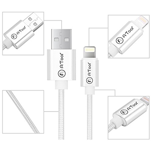 ATool® Lightning Cable, 2pcs 3Ft 10Ft, Nylon Braided USB Cord Charging Cable for iPhone SE, 6s, 6s Plus, 6, 6 Plus, 5S, 5C, 5, iPad Mini, Air, iPad 5, iPod , Copper core,IOS 9.0 (Silver)