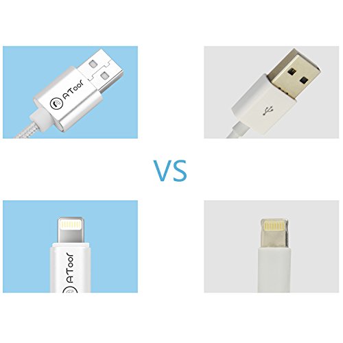 CHARMING DESIGN: Just like your Apple devices, the ATool braided lightning cable is design will exceed your expectations. The beautiful aluminum connectors offer an elegant, and the ATool cable is 100% Coppery core.yet powerful connection for syncing and charging Apple products, while the braided cable delivers both style and durability. This light-weight cable can be easily coiled, so you can carry it wherever you go :)