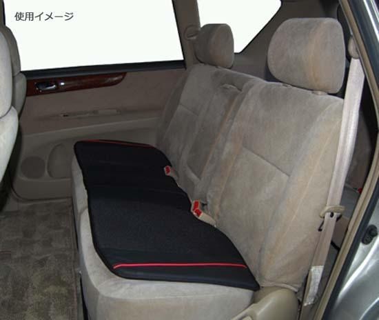 後部座席に敷いて使う、リア用クッションです。ブラックにレッドのラインがアクセントになっています。