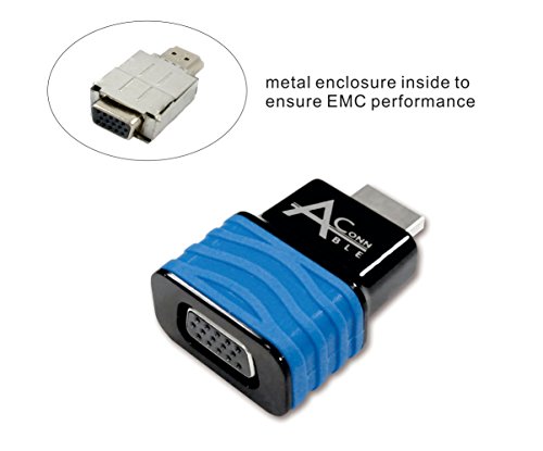 The Ableconn HDMI2VGAD provides an easy and cost-effective solution for connecting a notebook or desktop PC to a VGA display such as monitor, projector, or TV. Simply connect the HDMI male end of the adapter into an HDMI connector of notebook or desktop PC and the female end of the adapter to your VGA cable from the display. (VGA cable is not included)