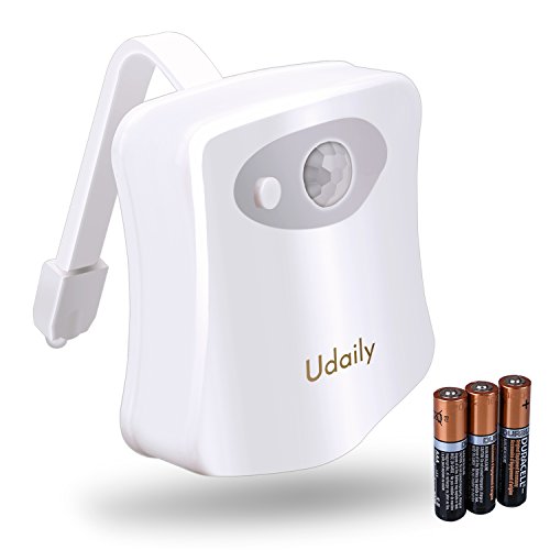 Udaily LED Toilet Bowl Light with Motion Sensor, 8 Colors Changing and 3-Piece Battery