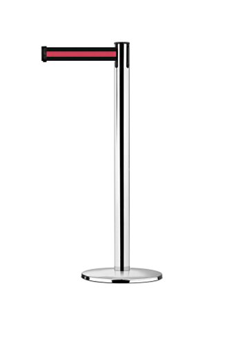 Tensabarrier 889U-1P-1P-STD-NO-S2X-C Polished Chrome Post, 2" Wide, 7' 6" Length "Stripe Black & Red" Belt, 90" Length, Steel
