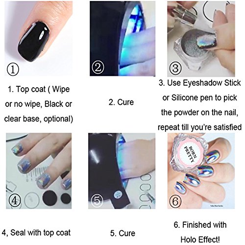 1 x 1g Holographic Chrome Powder, 1 x silicone brush