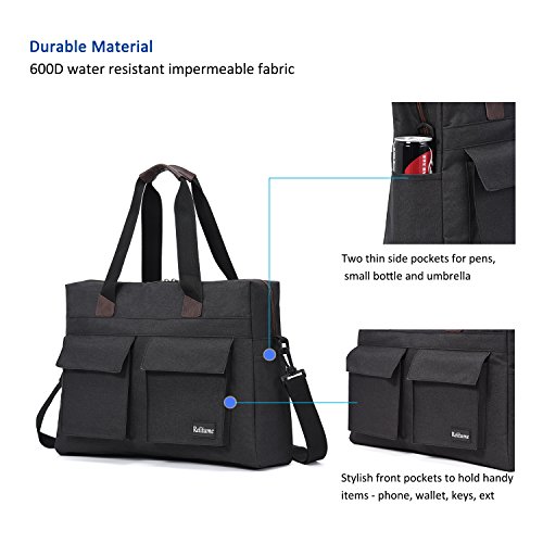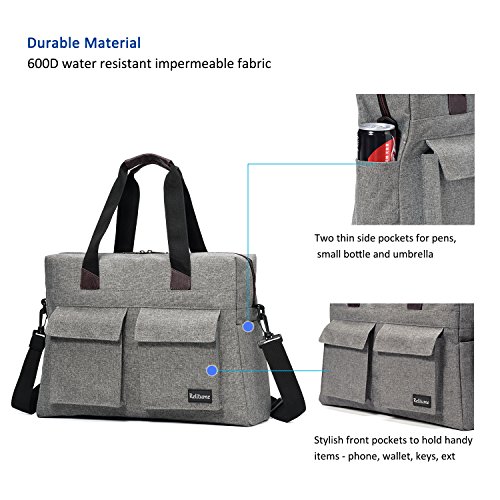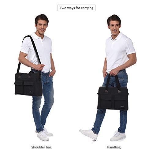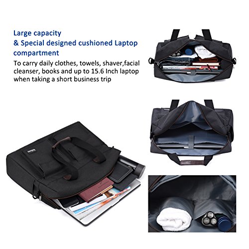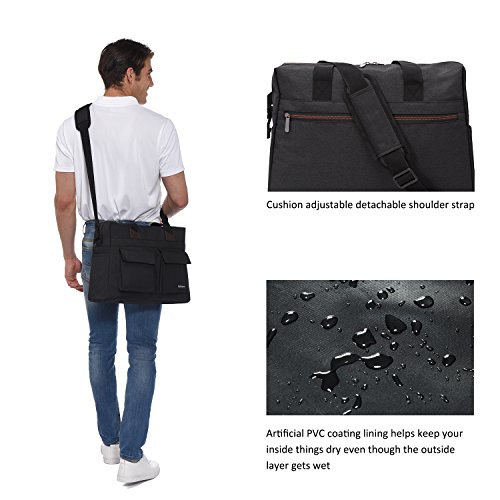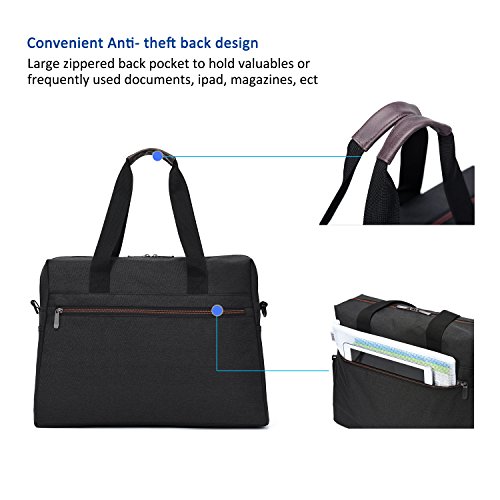 -. Feature : Durable material: Made from High Quality Durable Anti-tearing 600D Polyester for surface fabric, with Water Resistant Artificial PVC Coating Lining / Large main compartment: Dimensions: 17 x 12.6 x 4.7 inches. Capacity: 16.5 L. Cushioned Laptop Compartment: 15.7 x 9.8 inches, holds 15.6 inch as well as 15 inch, 14 inch and 13 inch Laptop/Macbook / Multifunctional Pockets: Two front pockets are designed for keys, changes, cards, phone and other handy accessories. Two small side pockets to hold drinks, umbrella and small bottles. One Large zippered back pocket have large capacity to hold valuables or frequently used documents, iPad, magazines. Two inside pockets and one large compartment to carry daily clothes, towels, shaver,facial cleanser, books and other travel necessities / Special Design: Adjustable comfort cushion shoulder strap and dual handles help carry easily. Fluorescent light zippers and simple-looking tails, combine with leather reinforce, form a fashion vintage travel style / Intended Use: Work, Travel, School, College, Carry-on, Lage, Camping, Day trips, Hiking and a great gift for everyone you love