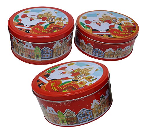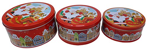 3 Pcs Christmas Nested Cookie Tin Set | Christmas Treat Containers, Candy Gift Boxes, Party Favors