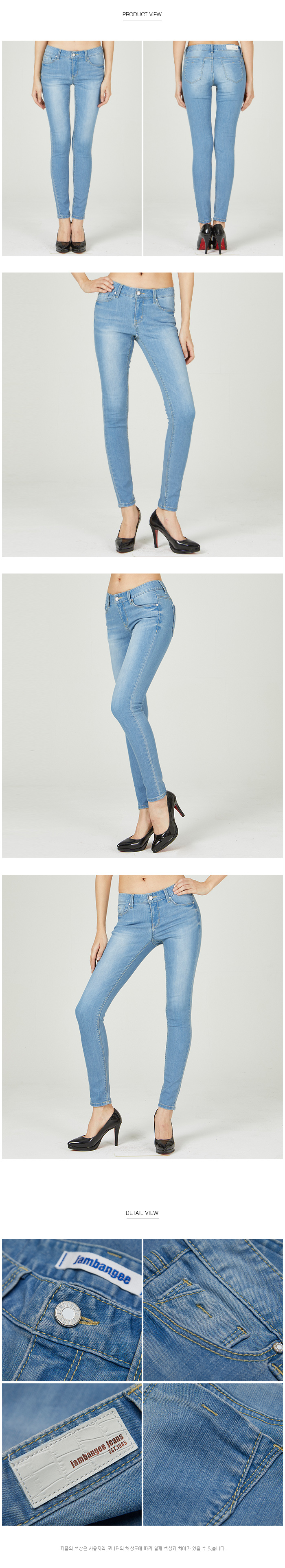 밝은 LB톤 인디고 칼라에 바이오스톤 캣 브러쉬 워싱에 여성용 SN핏 스타일.