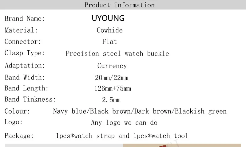 [해외] Uyoung 손목 20mm22mm 품질 정품 가죽 시계 밴드 남성 여성 블랙 시계 액세서리