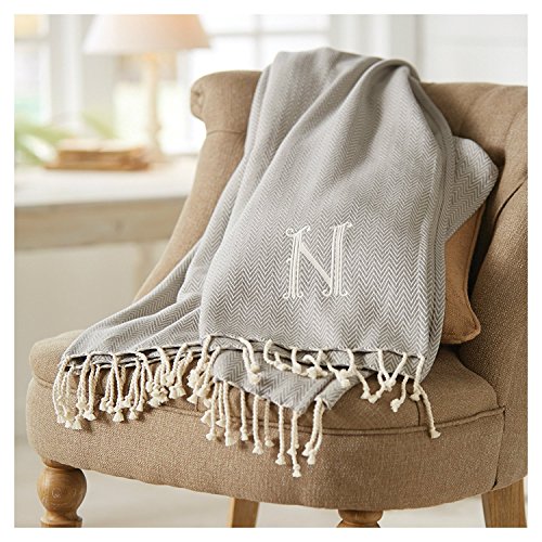 Mud Pie 4264313C Herringbone Initial C Throw Blanket with Fringe