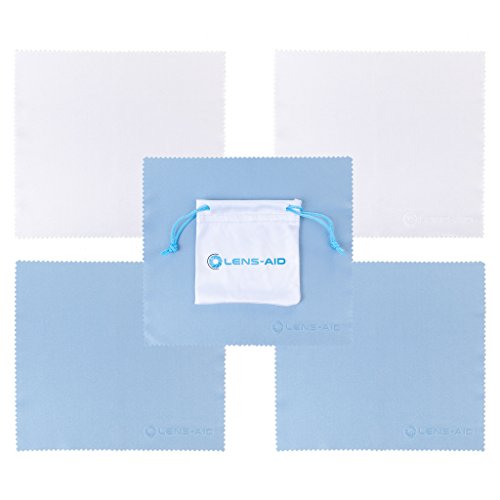 LENS-AID Mikrofaser-Reinigungstucher Set mit praktischem Aufbewahrungsbeutel: 5x Mikrofasertuch fur Kamera Objektiv, Filter, Display, Notebook, Smartphone und als Brillen-Putztuch fur eine