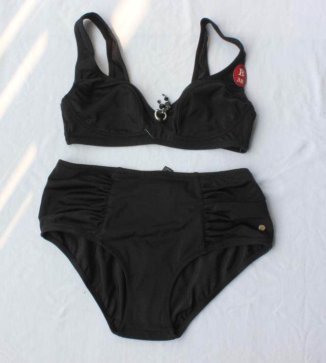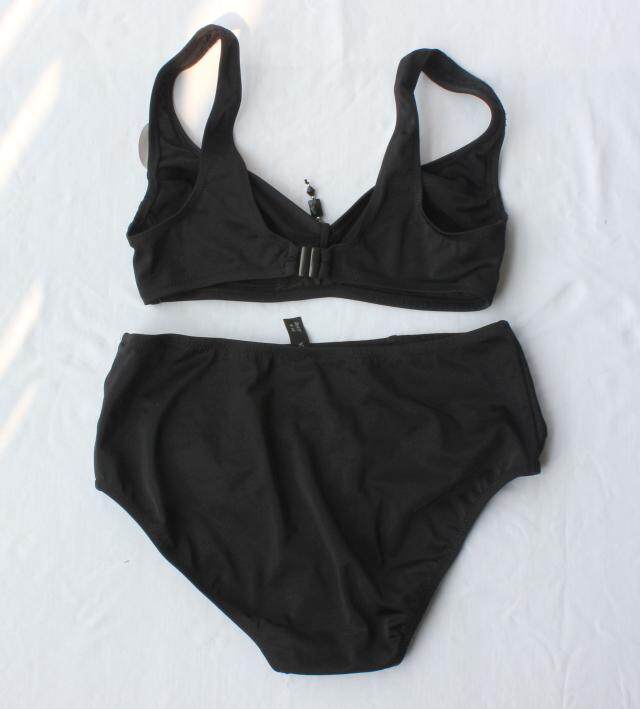 黑色套装如下:中高腰泳裤复古款式,右边罩杯内层网纱有勾破,不影响穿着,介意请慎拍,价格优惠了.