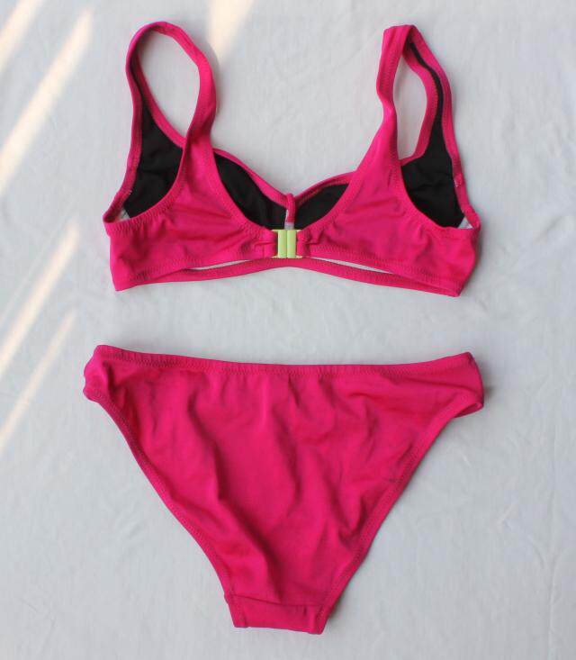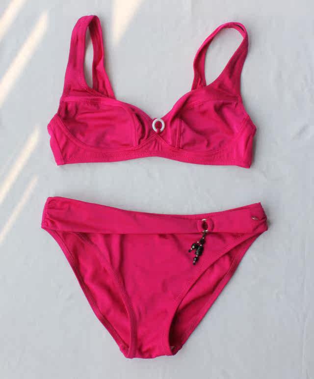 深玫红色套装如下:泳裤有不明显小染色,介意请慎拍.