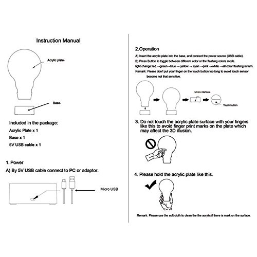 - 7 Colors Touch Control: Press button to change the light color (red, green,blue,yellow,cyan,pink, white and all colors flashing in turn)