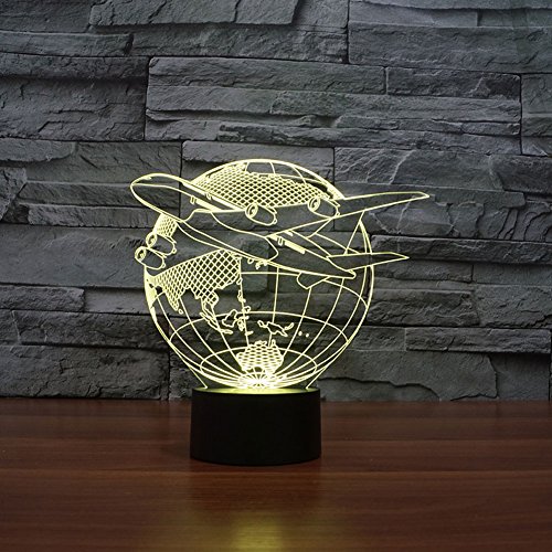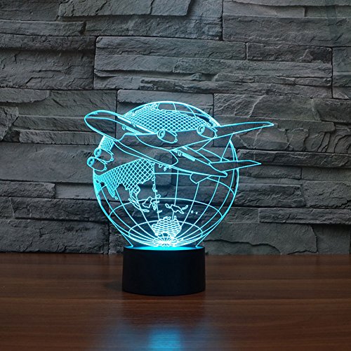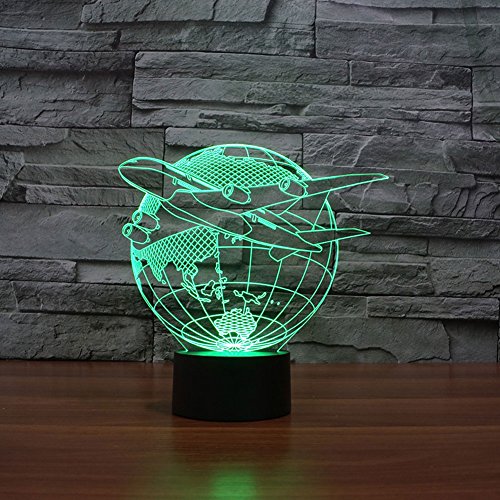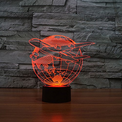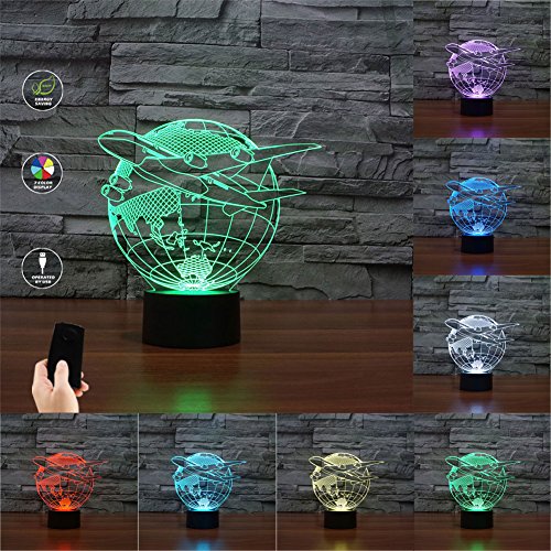 3D IllusionAirplane Fly Out of Earth Shaped Soft Multi-colored Change Remote Control LED Table Desk Night Light for Home Bedroom Decorations USB...