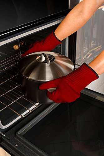 2 Pc Ultra Thick Oven Gloves - Heat Resistant Pot Holders or Safety Oven Mitts (Red)