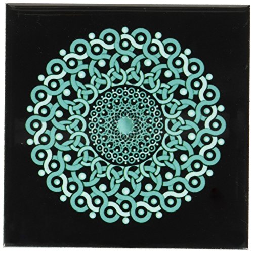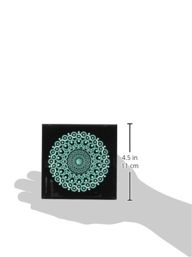 3dRose cst_32325_3 Aqua and Teal Green Fantasy Swirly Vintage Mandala on Black Background-Ceramic Tile Coasters, Set of 4