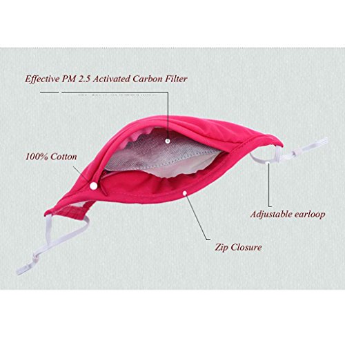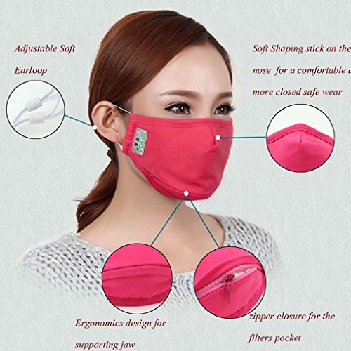 -. Feature : 1> 3 layers advanced filters, the first layer is antibiosis fiber for the first filtrating, in the middle is anion filter layer, the third layer is the same with the first layer for repeat filterating.3 layers to stop all kinds of pollutent to your body / 2> Adopt anion technology. Anion has strong capability of adsorption, it can neutralize the positive ion particle and dust to purify the air.What's more, it can disintegrate the positive ion,formaldehyde,benzene and other harmful air pollutant,greatly improving the air quality and lungs health. / 3> Adjustable earloops provide comfort and soft wearing. / 4> Human Engineering 3D Design, give you enough space to breathe.100% Cotton material, soft and warm / 5> Zipper open for the filter,effectively keep the filter fix in and never movement