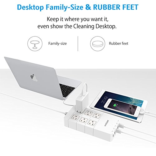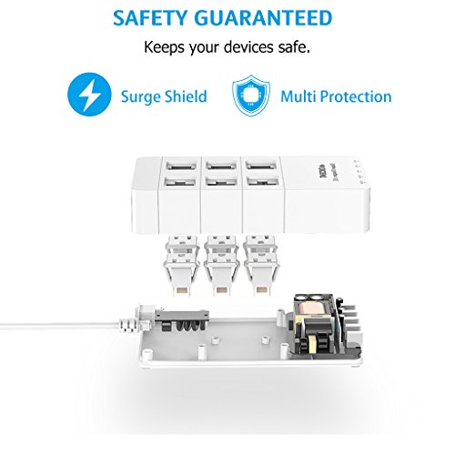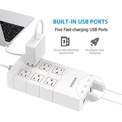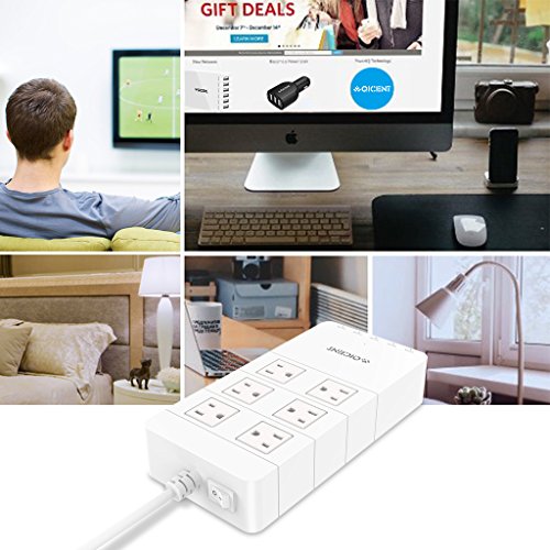 - Title : QICENT 6 AC Usb Electrical Power Strips Desk With Surge Protection 4.9 ft Long Cords And 5 USB Charging Ports Multi Outlets 100-240 Volt Flat Plug in On Off Appliance Television for Iphone Ipad White