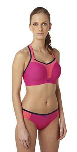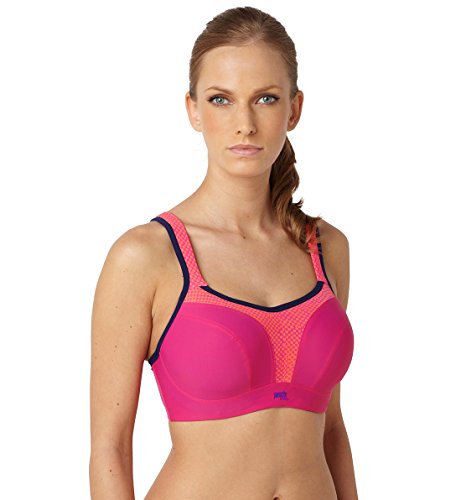 - Feature : Encapsulates breasts to reduce compression while providing ultimate support / Winner of sports bra brand of the year at the UK Lingerie Awards 2012 & 2013 / Super smooth shape with flat seams looks great under sportswear / Wide padded straps and silicone wrapped wires provide extra comfort and support / Racer back option provides more freedom in movement and extra support / Padded hook and eye for cushion comfort / Sizes on site refers to the UK sizes. Refer to the sizing chart for conversion.
