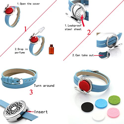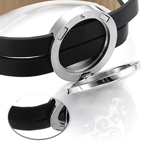 - Packing includes: 1 Locket Bracelet + 6 different color felt pads + Gift Box; Locket Diameter: 30mm/1.18" locket; Leather Band Width:8mm/0.31";Ajustable Wrist Length:13"-14.7",leather overall length:15.6"(Not including the buckle),one size fit most.