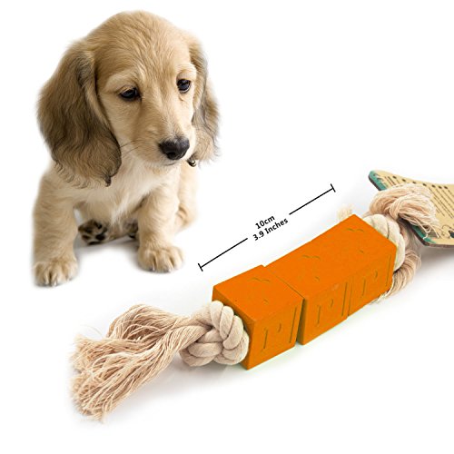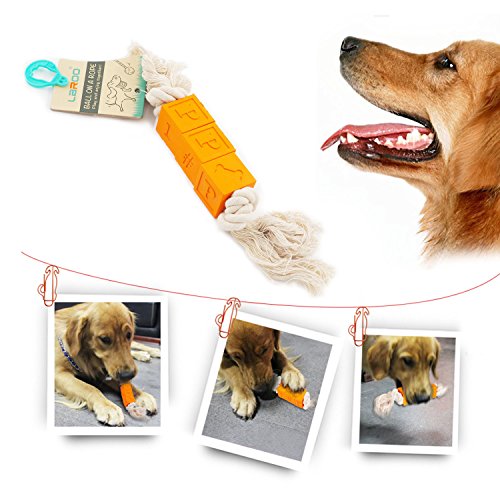 Studio : Alexans Publisher : Alexans Binding : Misc. Product Description LaRooTM Dog Toy on A Rope with Brick-shaped This LaRooTM dog rope toy help the dog or pets to establish healthy and non-destructive chewing habits instead of chewing the shoes/furnitures, the ball and the soft rope can also help a little to remove the tooth tartar and have more happy, healthy dog. The suggestion from LaRoo Official: 1.If the pets are not interested in playing the interactive toy at the first place, please offer a few snacks or treat as rewards to encourage her/him to get used to playing with the toys, allow pets do more exercises, healthy and happy. 2.As the interactive toys, we need spend more time to play with our furry family members to play "hard to get" game to active the predator instinct on pets, keep them happy and energetic. Attention: It is strongly suggested to do the regular proper check and inspected before play with all toys with dogs to ensure no accidental swallowing. The toy should then be discarded If there is any damage seen to guarantee your pets' safety. Features: - Safe: Environmental and non-toxic with certified HQ-EVA ABS materials - Waterproof and Washable - Long Lasting: Durable and strong materials - Chewable: Dog Bite-resistant What's in the Package?