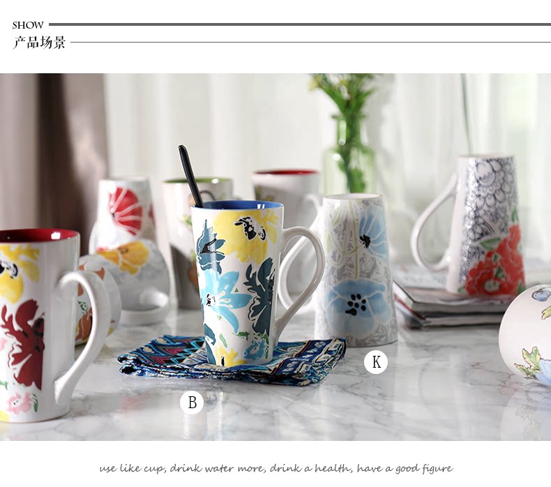 创意水杯子陶瓷 个性马克杯大容量带勺简约情侣咖啡牛奶喝水杯子