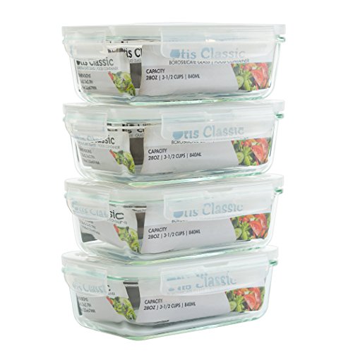 Glass Meal Prep Food Storage Container with Snap Locking Lids - 28oz - 4pc Box Set