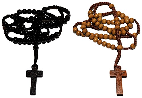 Hero PX 2pc Tan Black Colored Wooden Beads Rosary Necklaces with Jesus Imprint Cross