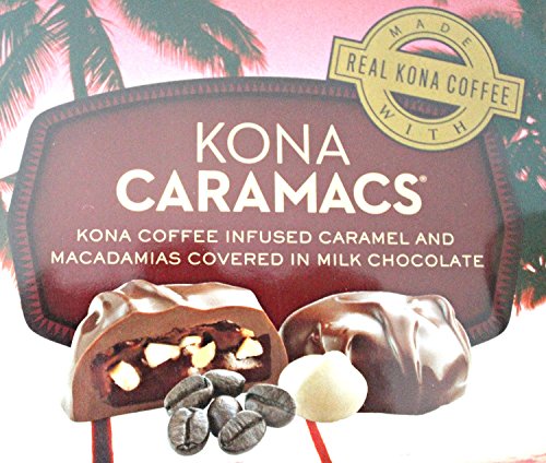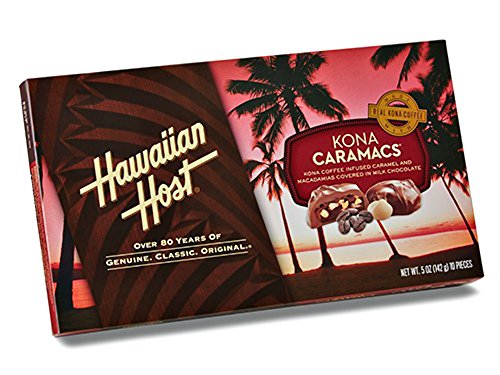 Hawaiian Host KONA CARAMACS COFFEE CARAMEL & MACADAMIAS COVERED IN MILK CHOCOLATE BOX NET WT 5 OZ (142 g)