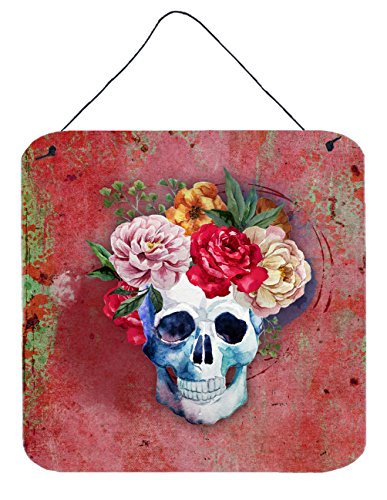 Caroline's Treasures BB5130DS66 Day of The Dead Red Flowers Skull Metal Print, Multicolor, 6" H x 6" W