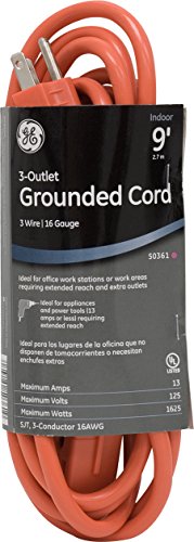 Extension Cord, 3-Outlet Indoor Grounded, 9-Foot Orange, 16 Gauge 50361