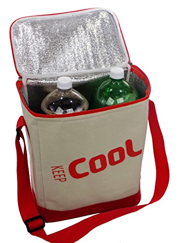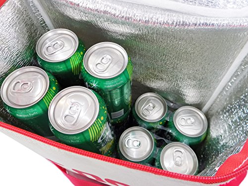 Deco Source Soft Cooler Bag with Aluminum Thermal Liner and Adjustable Shoulder Strap, Red and White B01C3E4BN2