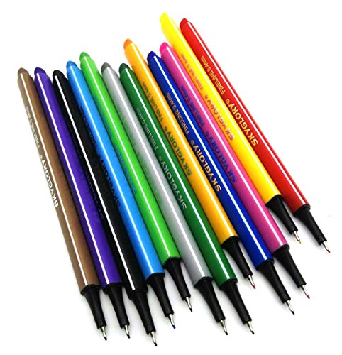 -. Title : SkyGlory Fineliner Pen,12pcs Color Set,0.4 Metal Clad Tip,Triangular Barrel, Perfect for Drawing.
