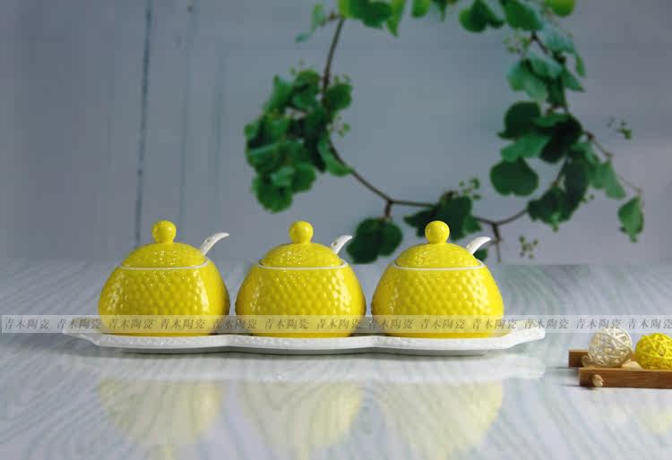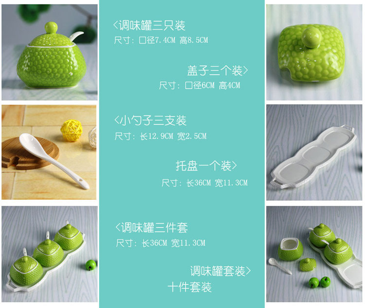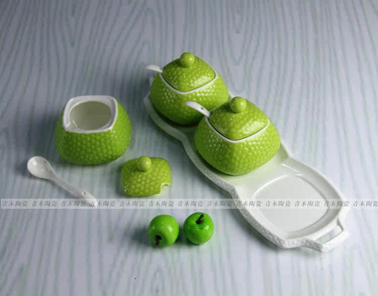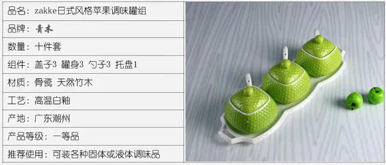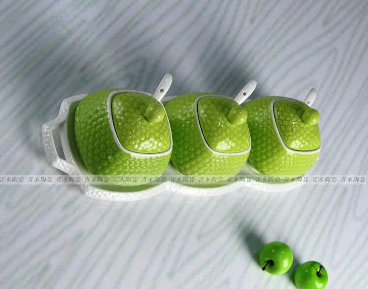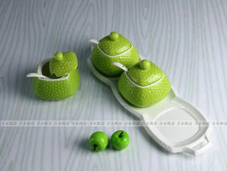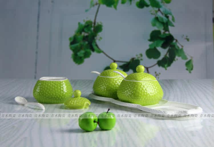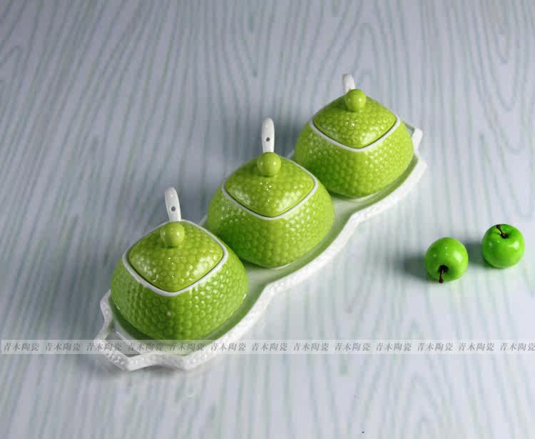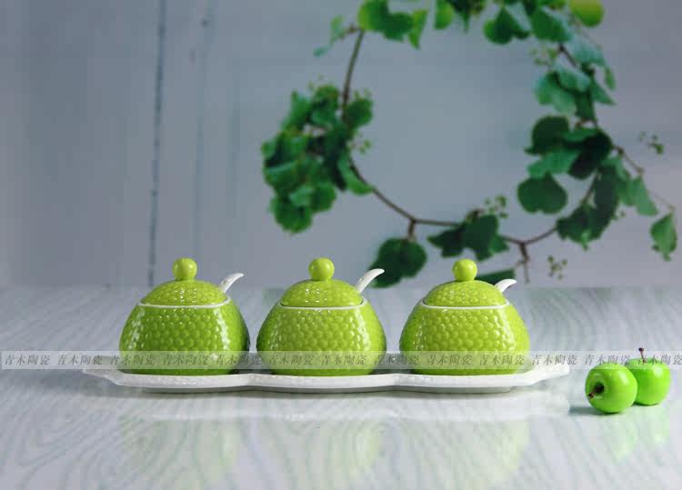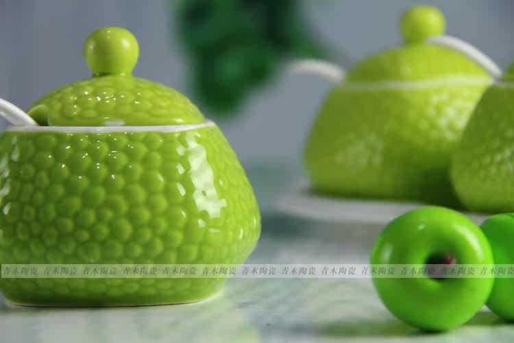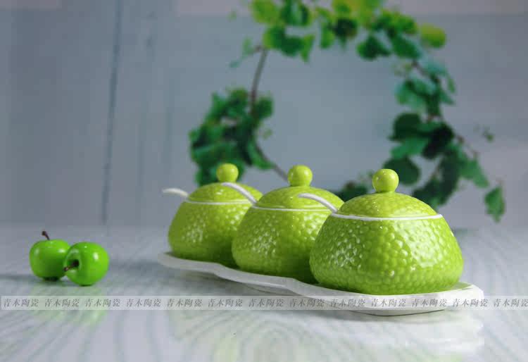 陶瓷色釉苹果调味罐三件套装盐罐子调料盒有孔盖创意厨房用品