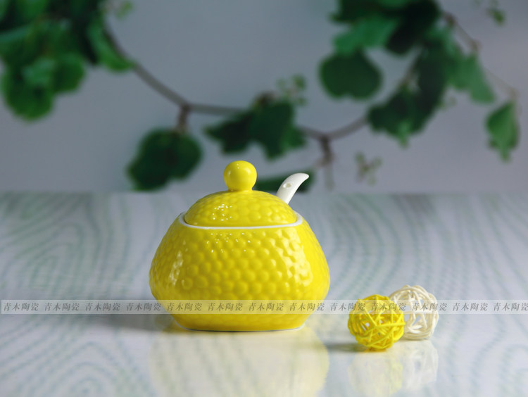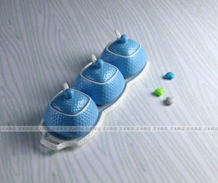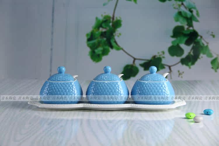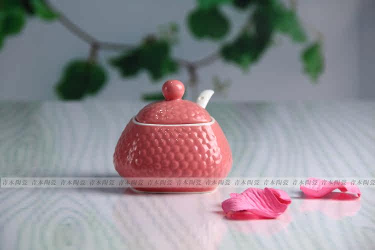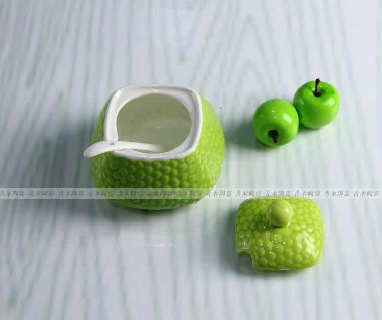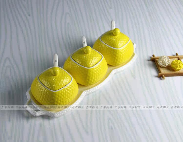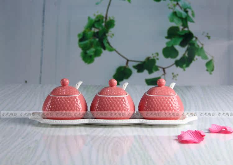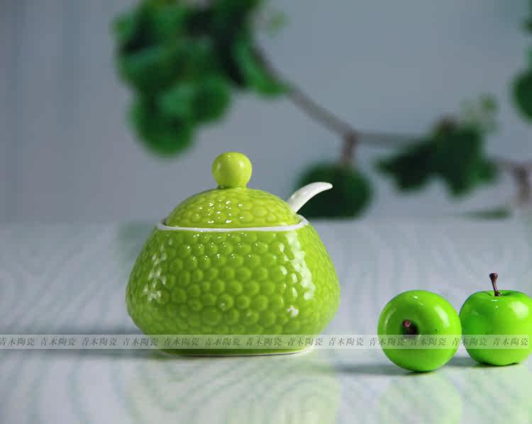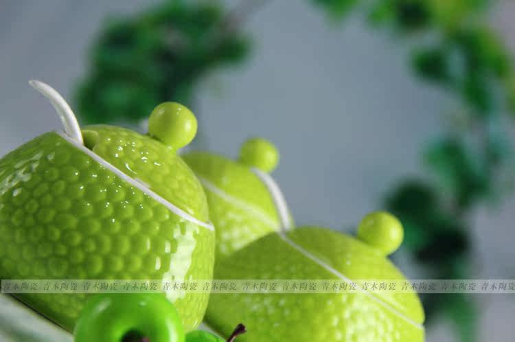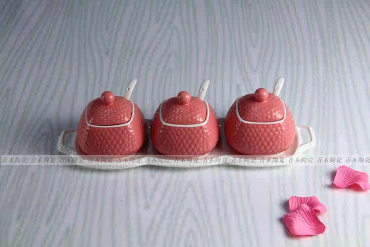 陶瓷色釉苹果调味罐三件套装盐罐子调料盒有孔盖创意厨房用品