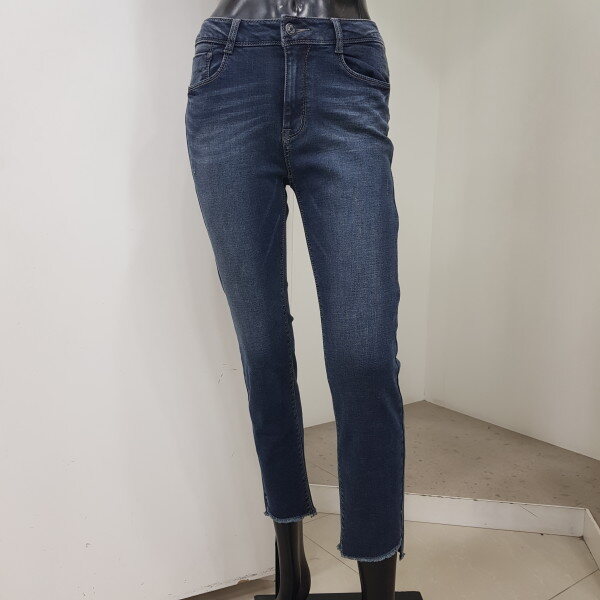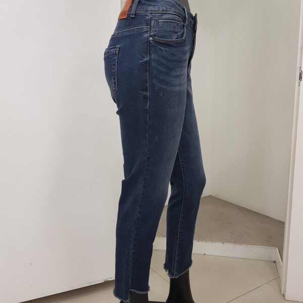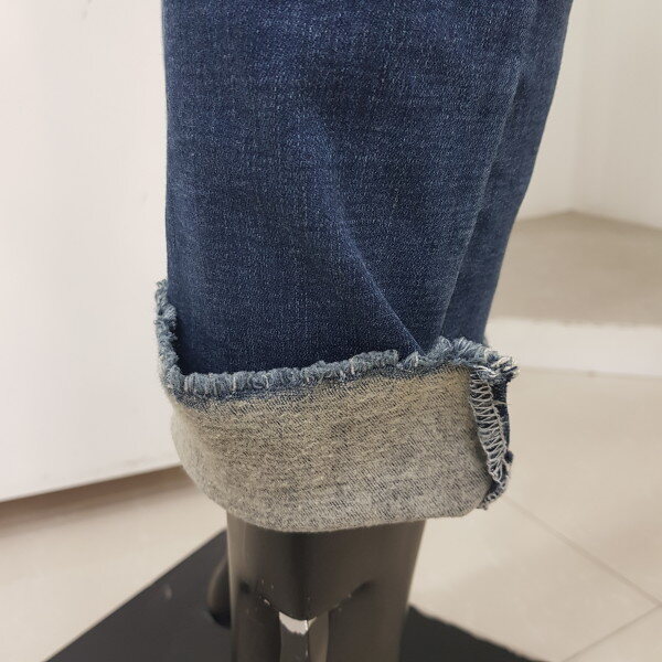 2018년 F/W 신상 여성 기모 DM톤 워싱 밑단변형 컴포트 크롭 스트레이트핏 데님 팬츠 입니다. NMF DDS540M의 기모버젼으로 몸판의 작은 기스구제들이 바닥컬러와 어우러지며 밑단에 사선으로 올이 풀리도록 포인트를 준 디자인 입니다. 캐쥬얼한 스타일에 멋스럽게 매치하기 좋은 아이템 입니다.