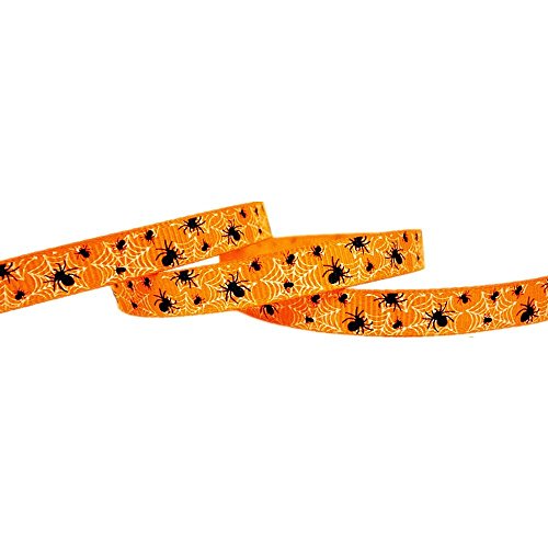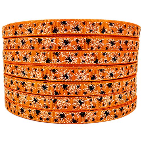 3/8" 50 Yards Halloween Spiders Web Pattern Printed Orange Grosgrains Ribbons