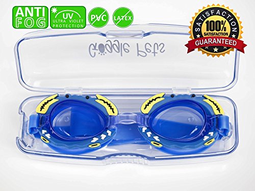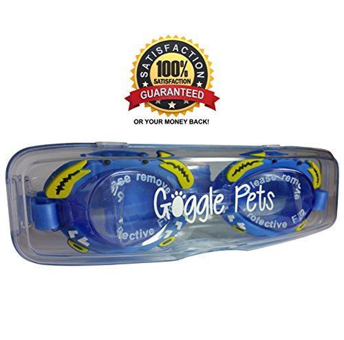 -. Feature : KIDS / JUNIOR SWIM GOGGLES that kids will love; equipped with polycarbonate and anti-fog, scratch resistant lens technology / COMFORTABLE, DURABLE AND HYPOALLERGENIC PREMIUM 100% SILICONE strap and eye cups (PVC AND LATEX FREE) / GLARE REDUCTION AND UV PROTECTION: Crystal clear colored lenses protect eyes from harsh UV and pool chemicals / ADJUSTABLE STRAPS and nosepiece help create a soft, CUSTOM FIT AND WATERTIGHT SEAL; GREAT for little swimmers faces / BACKED BY A NO-QUESTIONS-ASKED, 100% SATISFACTION GUARANTEE. If you're not completely satisfied with your Goggle Pets product, we'll replace it for free or give you your money back; GUARANTEED! Goggle Pets kids goggles are a premium product and are backed by a premium warranty. ORDER TODAY, RISK FREE!