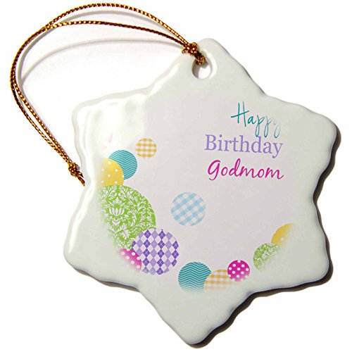 3dRose orn_165137_1 Happy Birthday God Mom-Modern Bright Colorful Dots Pattern on White-Snowflake Ornament, Porcelain, 3-Inch