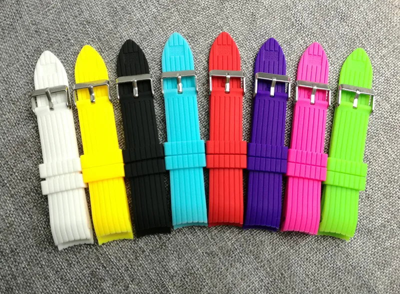 새로운 스테인레스 스틸 버클 캔디 컬러 실리콘 스트랩 20 미리메터 브랜드 운동 방수 스트랩