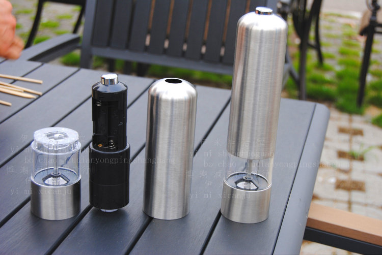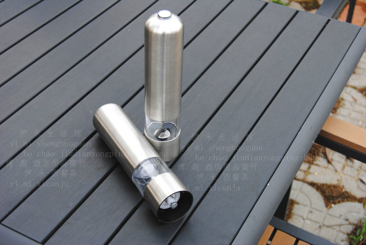 用途:西餐制作和就餐时,盐胡椒使用非常多,这款电动盐胡椒磨使用非常方便,可以调节盐胡椒粗细;外壳采用18-0高级不锈钢制成,外观高档大方。