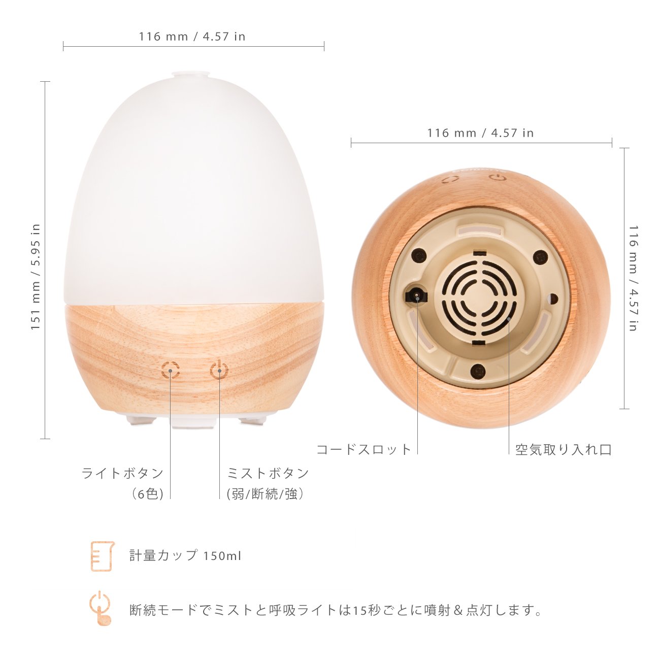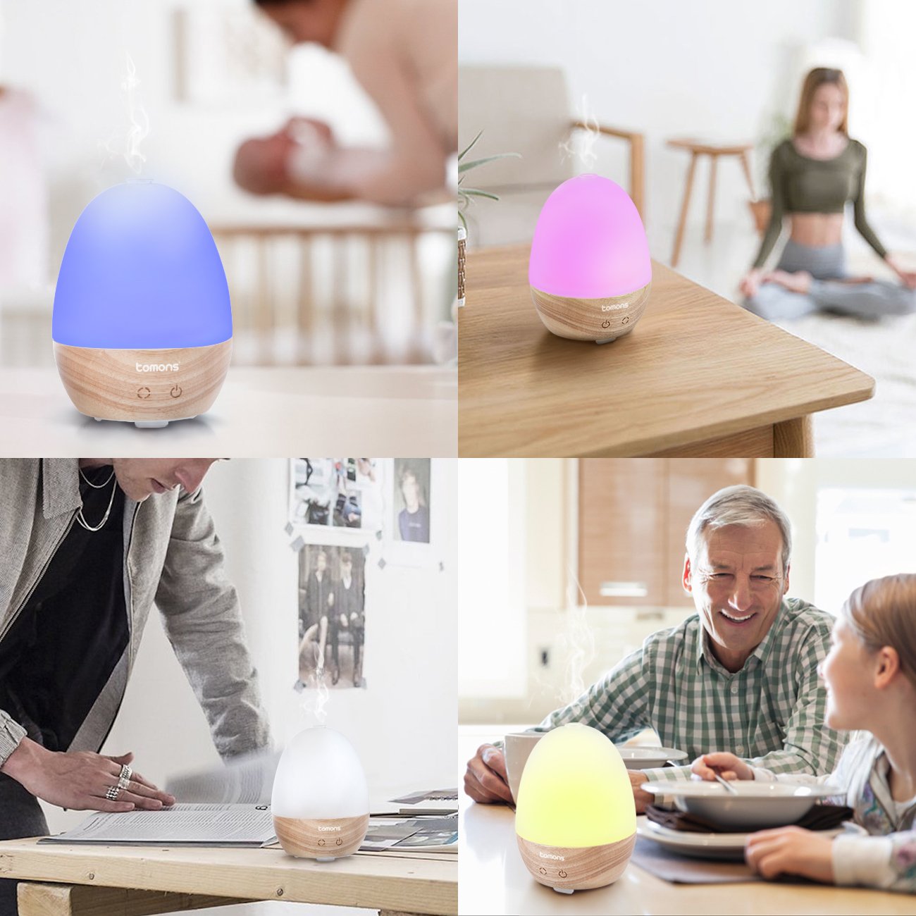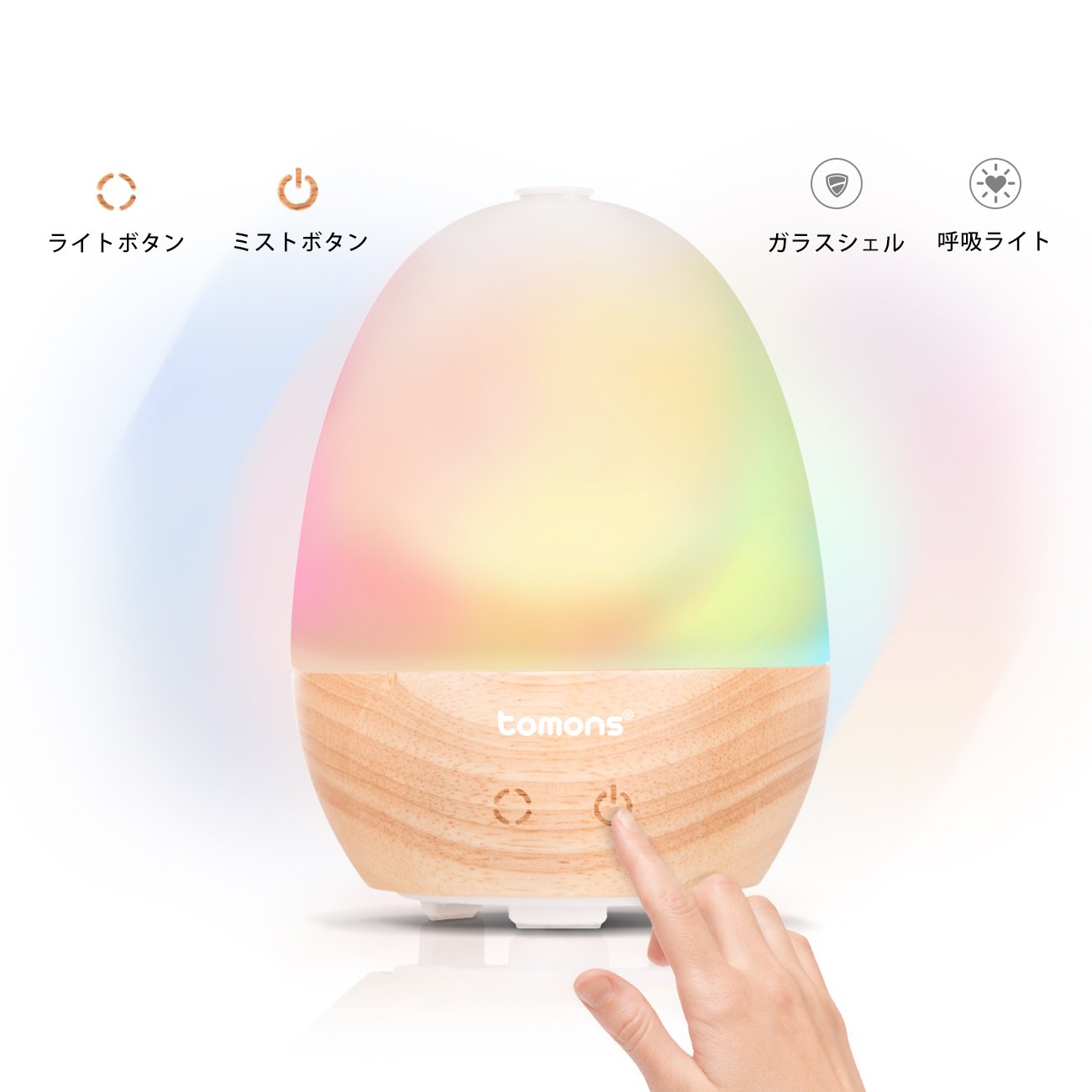 6 color background lighting To emphasize the scent of essential oils, you can choose from 6 color background lighting.