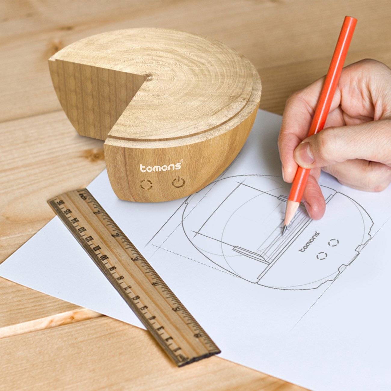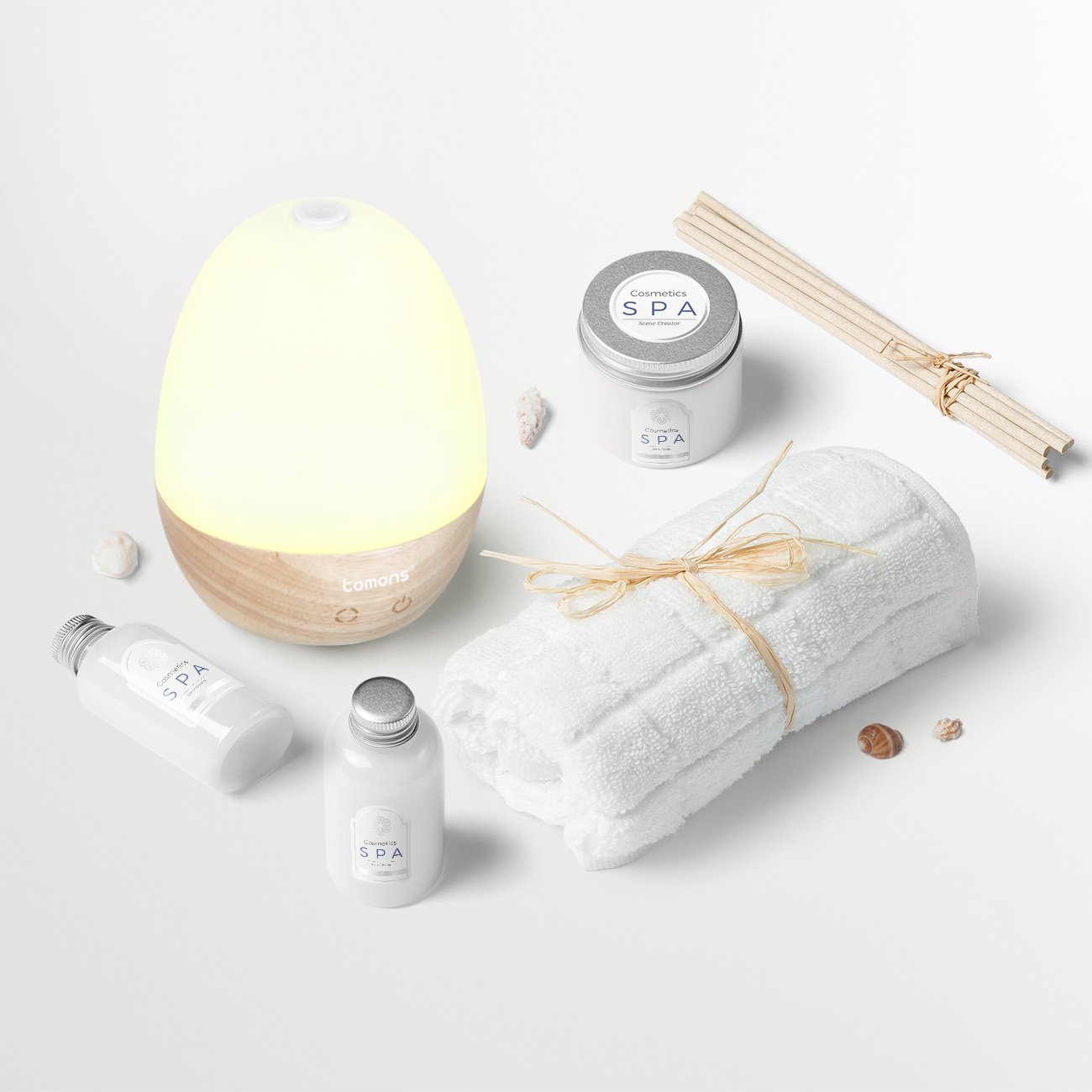 The Tomons aroma dispenser condenses water without generating heat by ultrasonic waves and moisturizes the air.