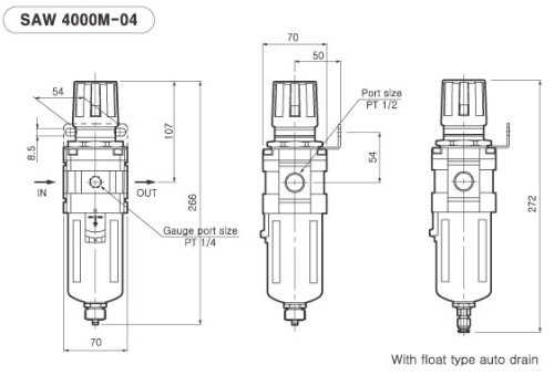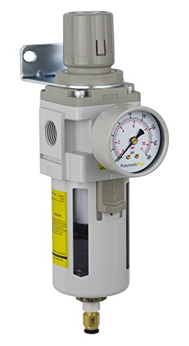PneumaticPlus SAW4000M-N04BDG Compressed Air Filter/Regulator Combo Piggyback Style 1/2" NPT - Auto Drain, Poly Bowl with Gauge
