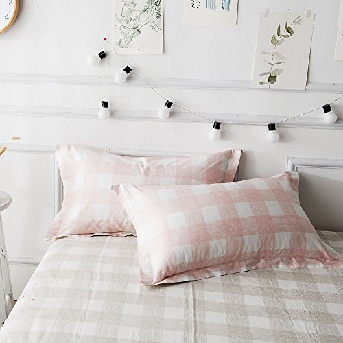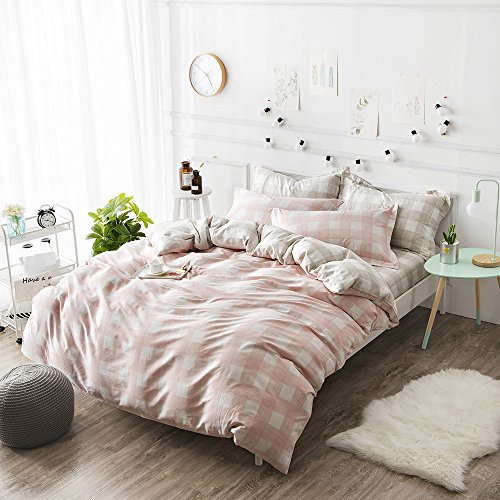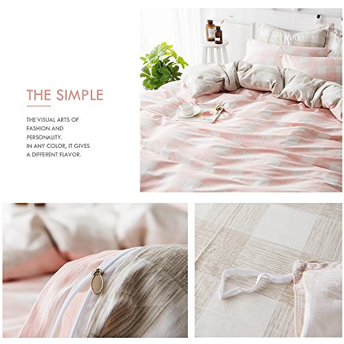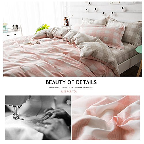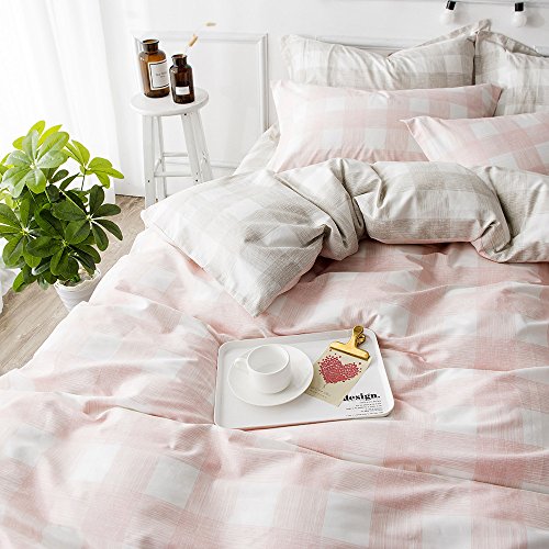 ORoa Pink White Gingham Duvet Cover Set Twin Reversible Quilt Cover for Girls Bedding Set for Kids Teens, Style 1