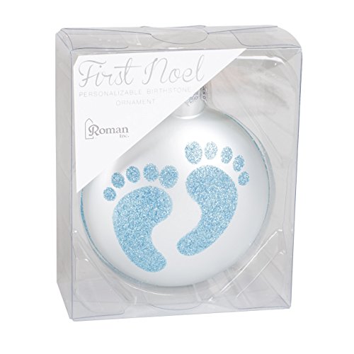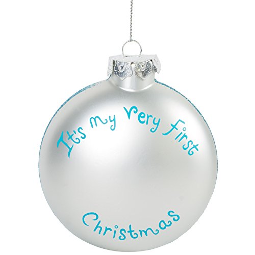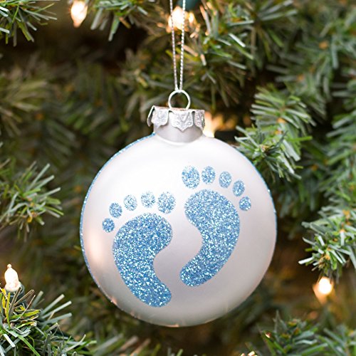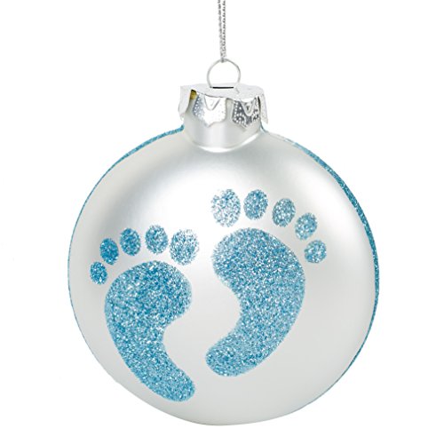 Baby's First Christmas Boy Glittered Blue Feet 3.5 Inch Glass Round Christmas Tree Ornament