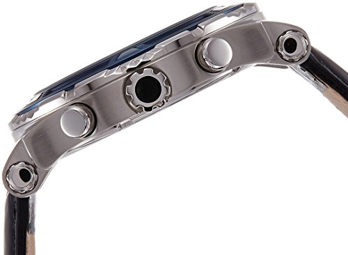 -. Title : Guess Men's 46.5mm Black Leather Band Steel Case Quartz Blue Dial Analog Watch W0673G4