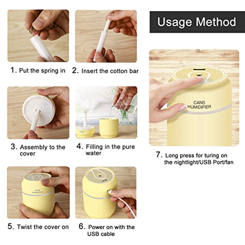 Ultrasonic Cool Mist Humidifier w/NIGHTLIGHT - Best Aromatherapy Humidifiers for Bedroom, Living Room, Office and House | Quiet Operation, Safe for Baby,Light Yellow