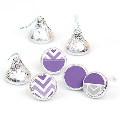 Chevron Purple - Baby, Bridal Shower or Birthday Party Round Candy Sticker Favors - Labels Fit Hershey’s Kisses (1 sheet of 108)